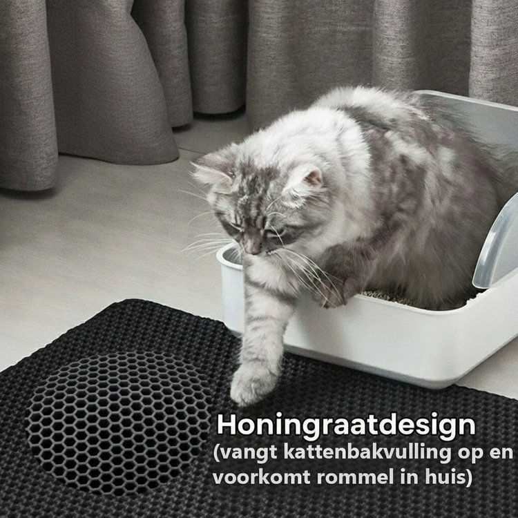 Na elk bezoek aan de kattenbak nemen katten vulling mee onder hun pootjes, wat zorgt voor rommel door het hele huis. Deze kattenbakmat is groot genoeg om het volledige gebied rondom de kattenbak te bedekken en vangt losse korrels direct op.